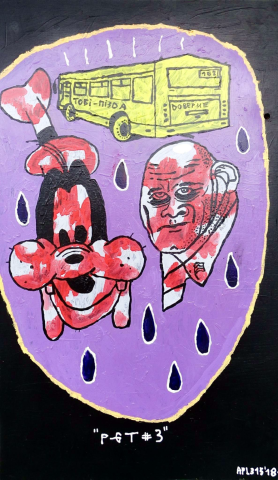 “Пгт #3”. Мікс-медіа на дерев’яній панелі, 50×86 см, 2018